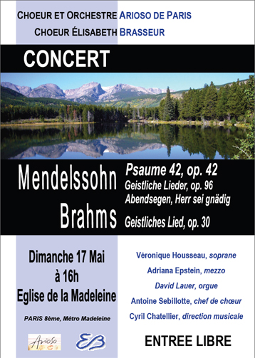 AfficheMendelssohnMadeleine17052009 Mendelssoh BrahmsEglise de la Madeleine17 Mai 2009 Ajouter un Commentaire Nom (obligatoire) Adresse email (obligatoire) Recevoir une notification par email lorsqu’une réponse est postée Rafraîchir Enregistrer Annuler