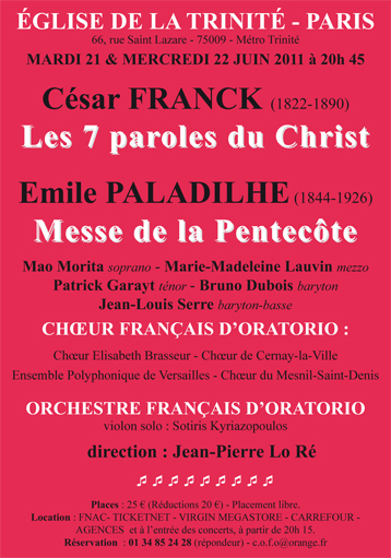 21062011 Messe de la PentecôteParis 921 et 22 juin 2011 Ajouter un Commentaire Nom (obligatoire) Adresse email (obligatoire) Recevoir une notification par email lorsqu’une réponse est postée Rafraîchir Enregistrer Annuler
